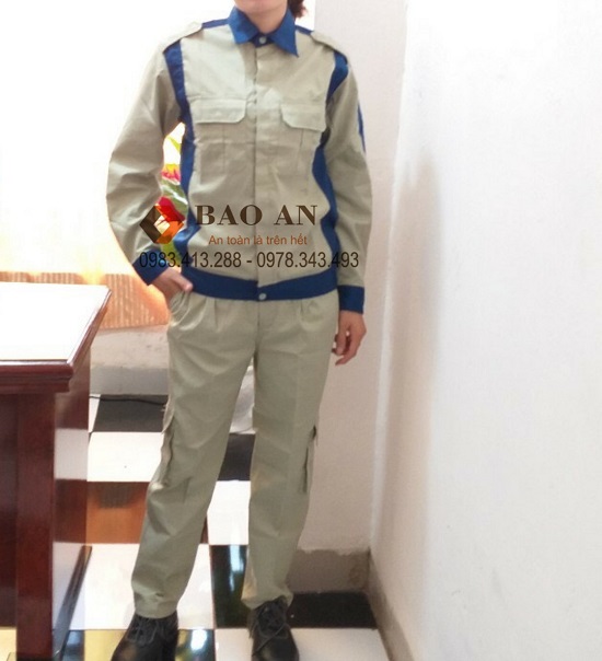 Hình thức: Kiểu quần áo bảo hộ lao động may theo size công nghiệp, có túi hộp ở ngang chân, đẹp.