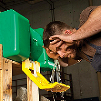 Công nhân đang sử dụng bồn rửa mắt khẩn cấp
